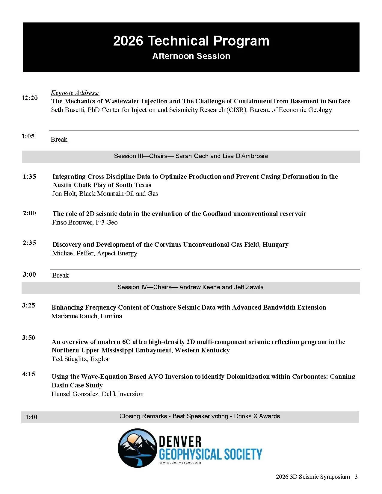 3D Seismic Symposium - “Derisking with Data” - March 5, 2026, Ellie Caulkins Studio Loft, Denver CO